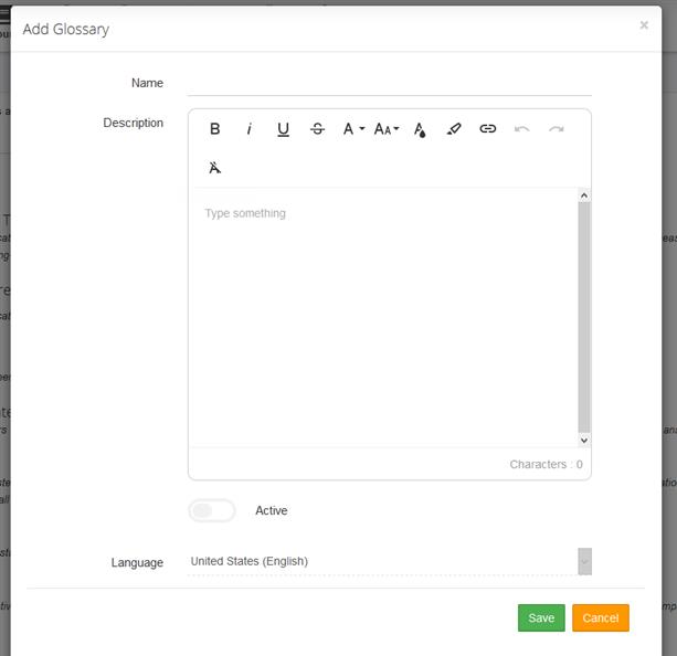 - In the Description field, enter a definition of the glossary item to display on the site.