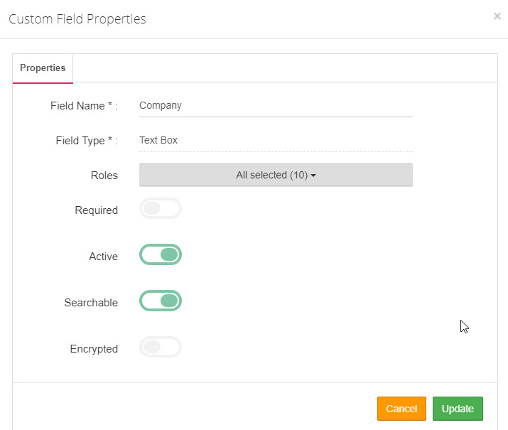 - When you click one of the available buttons, the Properties box open to fill in additional information.
